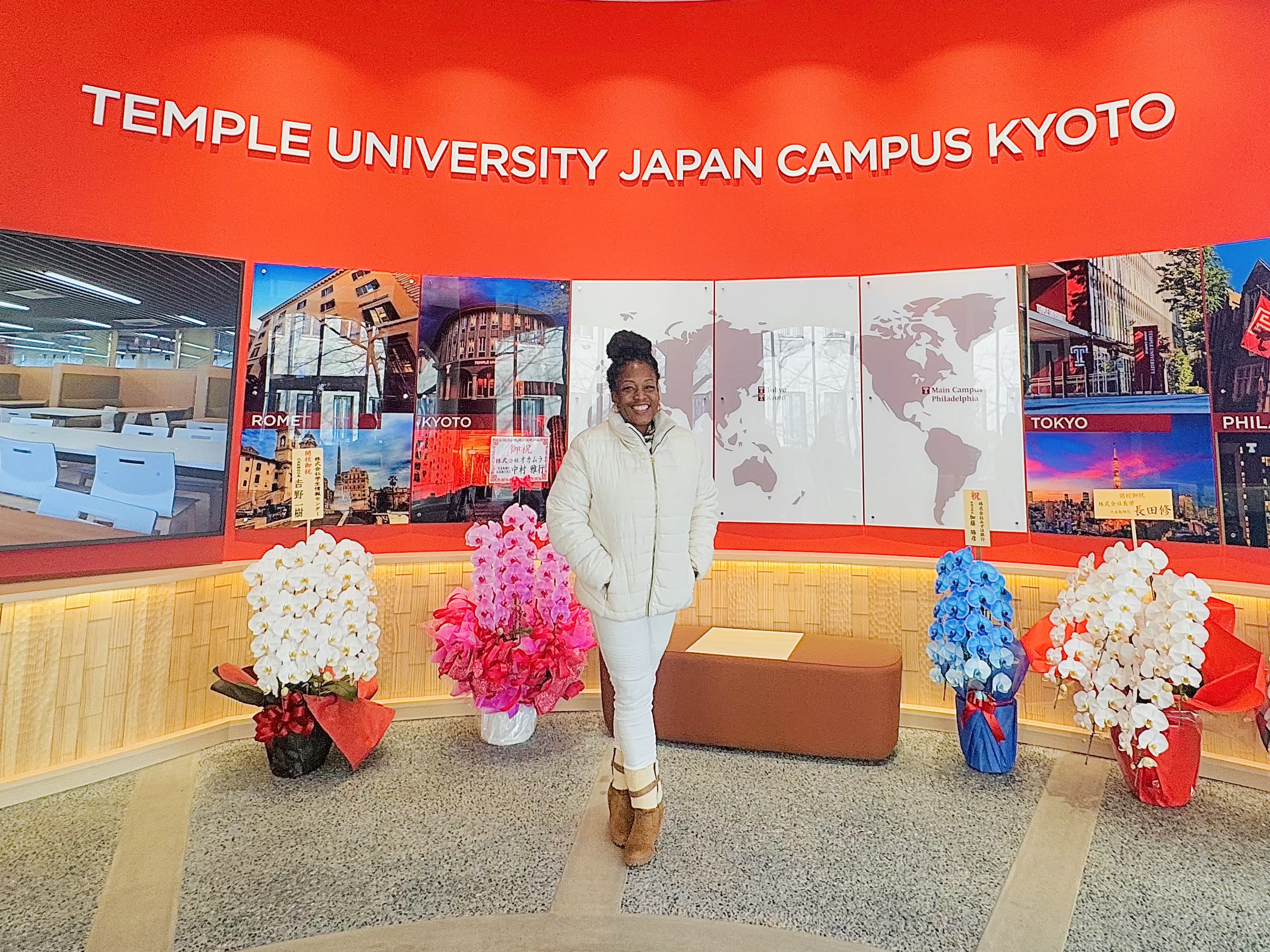Visiting the Temple campus in Tokyo was phenomenal. I didn’t know what to expect, but standing there in another country far from home, seeing my university on the ground—it was surreal. There were so many familiarities, little things that reminded me of life at Temple over 20 years ago. I told my teenagers—who, of course, rolled their eyes the whole time—but I made them come. And in the end, they appreciated it. Touring both the Tokyo and Kyoto campuses was amazing. It gave me a chance to reflect, make comparisons and see how much progress has been made.