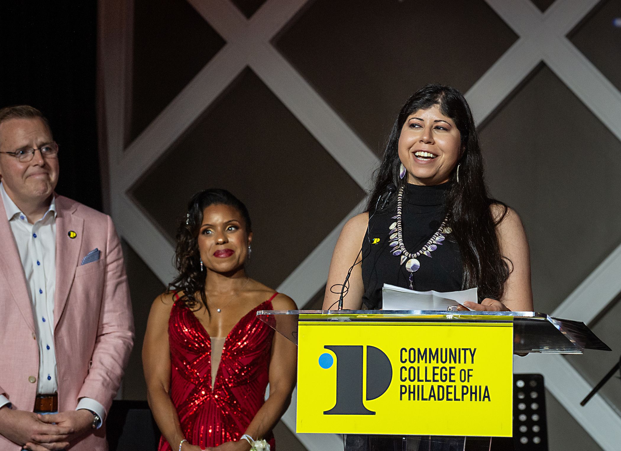 Fatima Abbas received the Alumni Achievement Award at The Community College of Philadelphia's 2025 Black and Gold Gala. Photo taken by Elizabeth Field, courtesy of The Community College of Philadelphia.