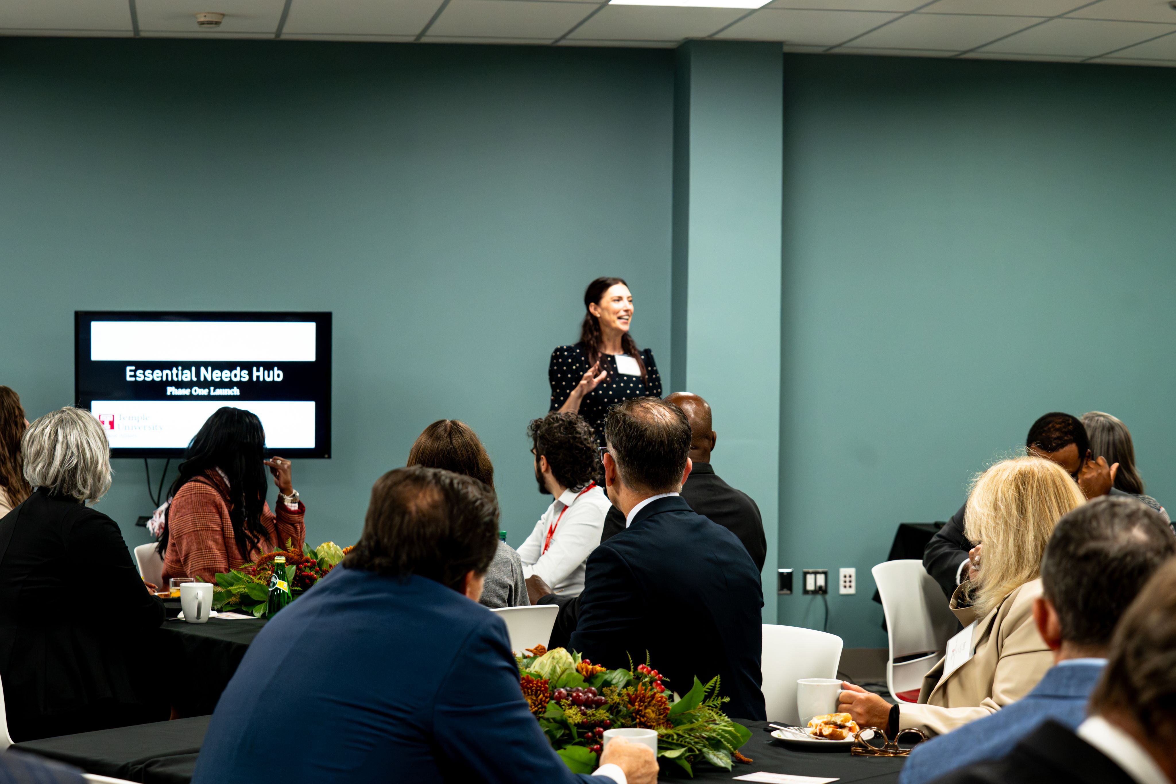 Temple University donors and friends got to tour and have breakfast in the new Essential Needs Hub in the Howard Gittis Student Center. This central space will address food security, housing and transportation support, emergency aid, academic resources, and wellness—ensuring students have the essentials to succeed.