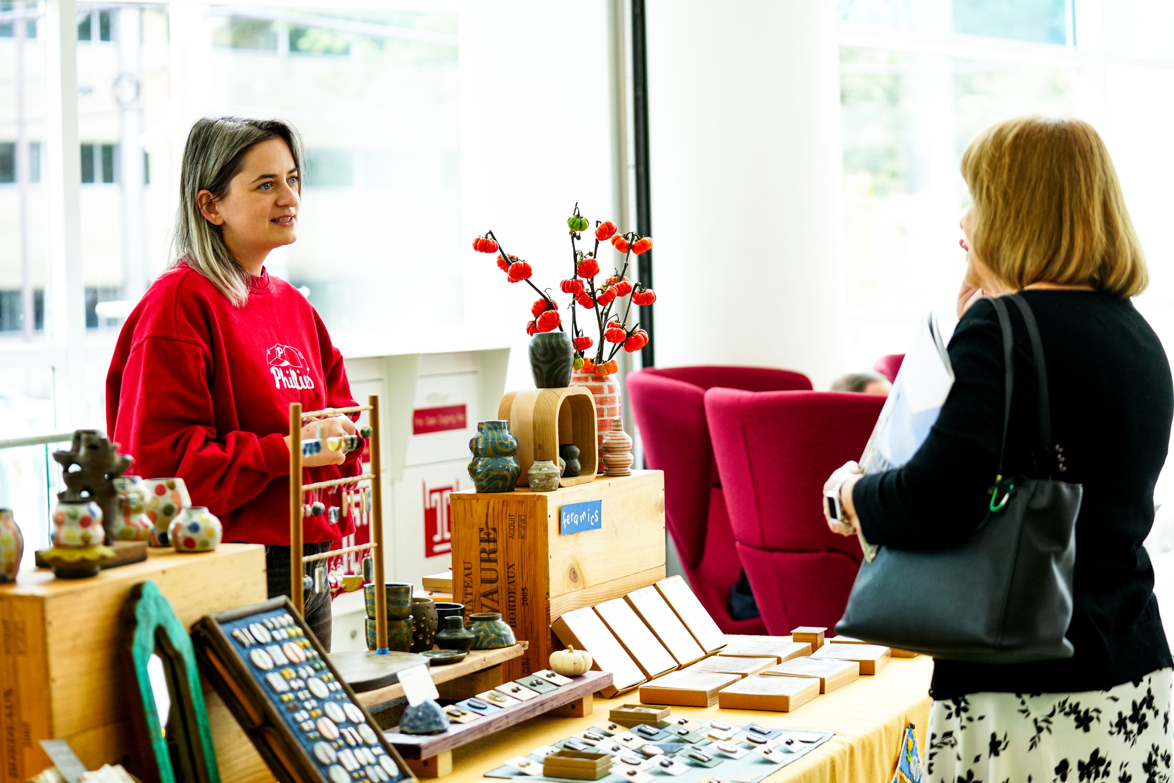 This year’s 14th annual event presented a juried show of artwork by Tyler School of Art and Architecture alumni and current students, with items ranging from paintings, ceramics, prints, jewelry, textiles, sculpture, photography, plush, stationery, wearable art and more.