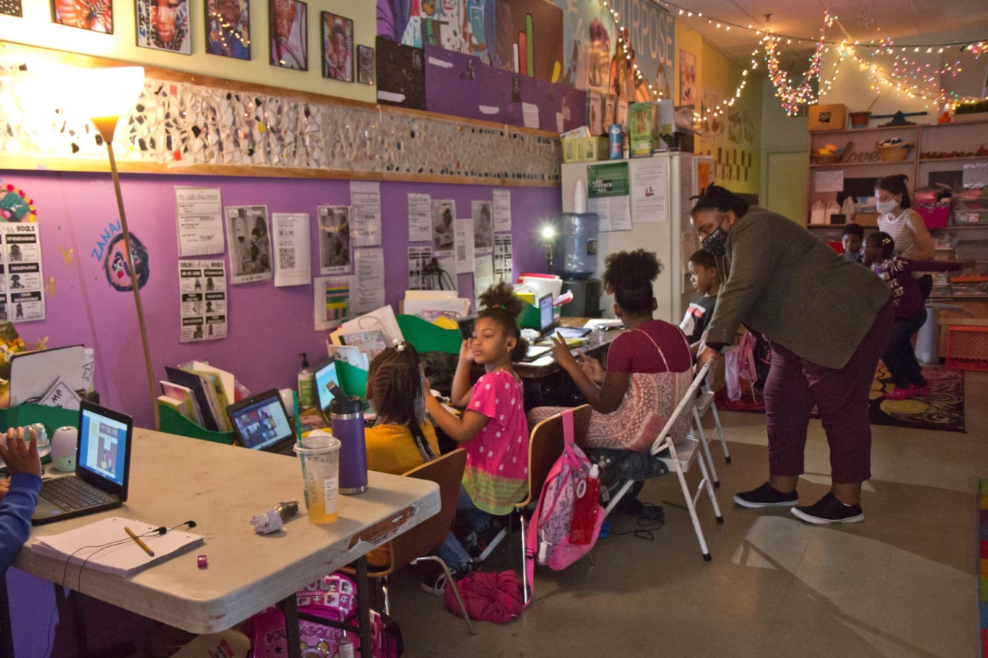 Sabriaya and her equity pod students during the pandemic at Tree House Books.
