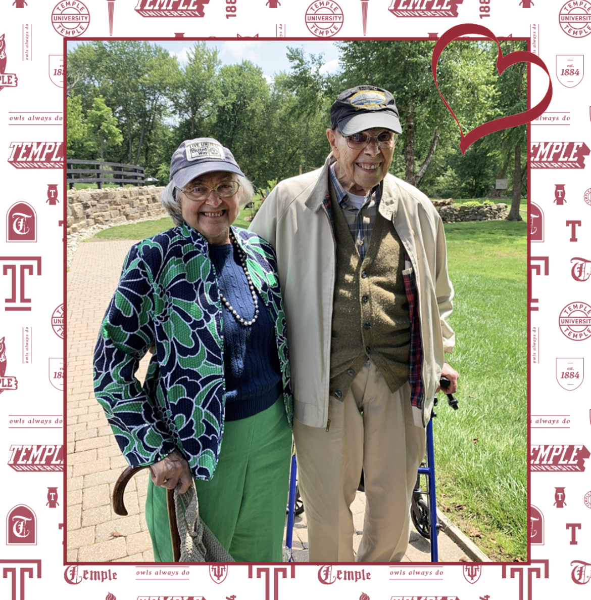John and Marilyn are pictured here in 2022, celebrating during their 67th anniversary lunch. The couple met at Temple when the Dental and Pharmacy schools were located in the same building at Broad and Allegheny.