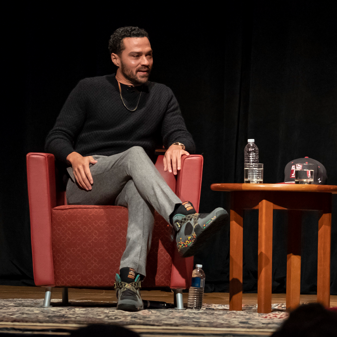 Jesse Williams on Temple's campus for a discussion in 2019.