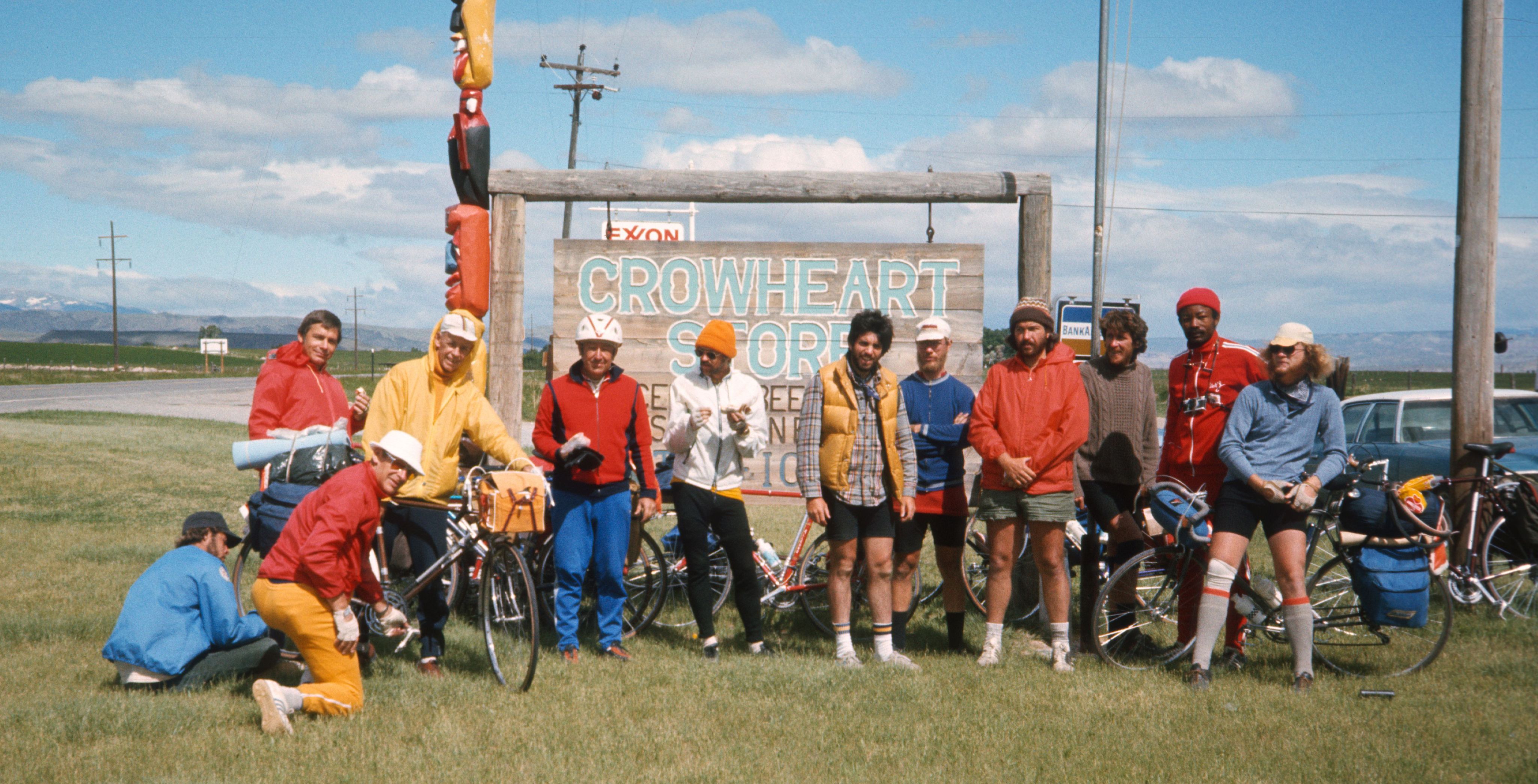 Walter and friends in Crowheart, Wyoming during the Bikecentennial, June 1976. Photo taken by Theresa Whelan Leland.