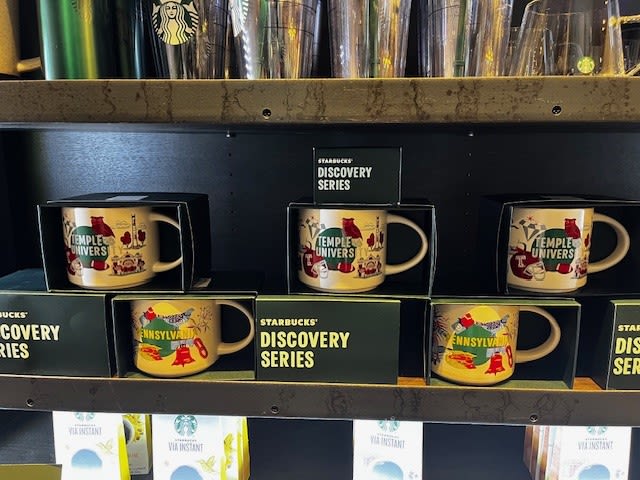 The mug is of course also available right on Temple's campus as well, at the Starbucks inside the Howard Gittis Student Center. Check out the entire list of stores below (SB = Starbucks café location). 🦉